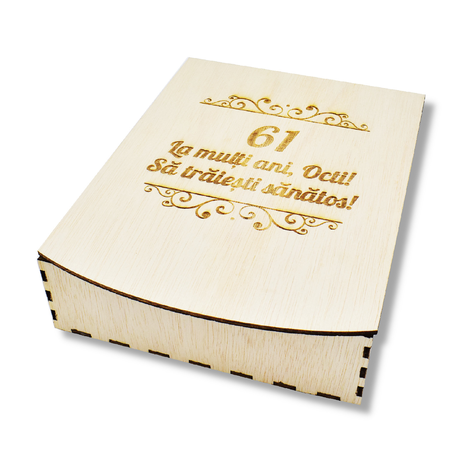 Surprinde-ti nasul, sotul, prietenul, cu un cadou deosebit, autentic romanesc, perfect pentru aniversari, zile onomastice sau alte ocazii speciale! Acest set cadou pentru pălinca este ambalat intr-o cutie eleganta din lemn personalizata, gravata cu urarea „La multi ani, cu sanatate,!” sau orice alt text dorit. Este un cadou unic, de impact, cu o nota traditionala si un plus de eleganta oferit de detaliile atent lucrate.