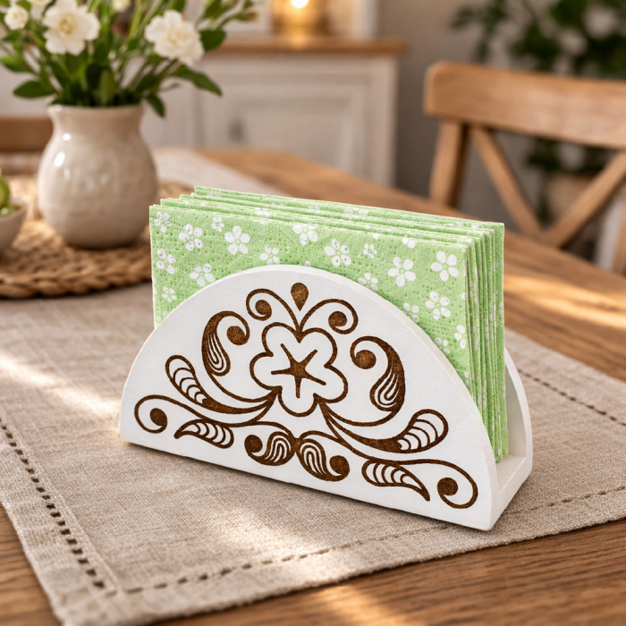 Acest suport pentru servetele combina utilitatea cu estetica si aduce un plus de farmec fiecarei mese.