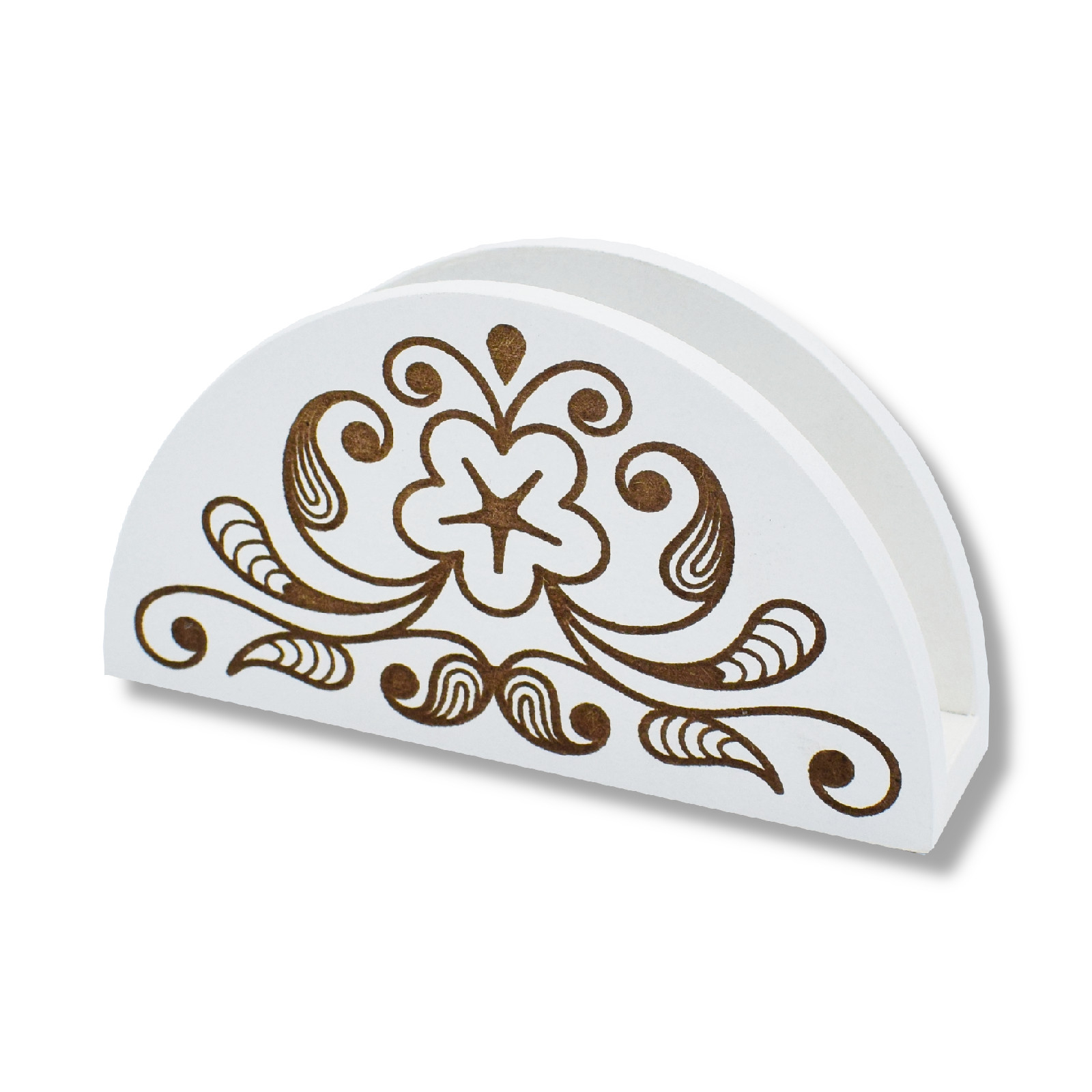 Designul semicircular ofera stabilitate si permite asezarea usoara a servetelelor de masa. Modelul traditional gravat se potriveste perfect atat in interioare moderne, cat si rustice sau traditionale. Suportul este ideal pentru servetele de masa standard si poate fi folosit zilnic sau la mese festive.