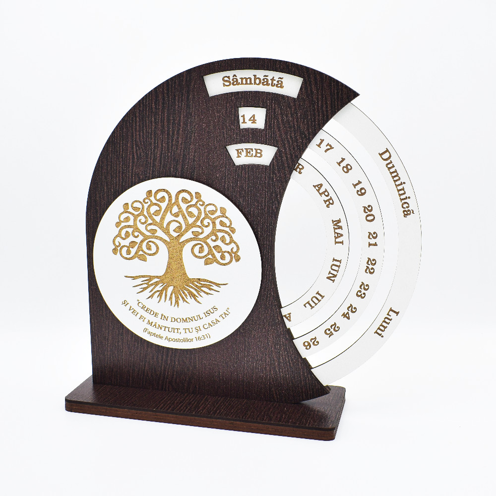 Calendarul este decorat cu "copacul vietii", si cu un text scurt garvat facandu-l un cadou perfect pentru familie, prieteni, educatoare, invatatoare, profesori sau colegi.