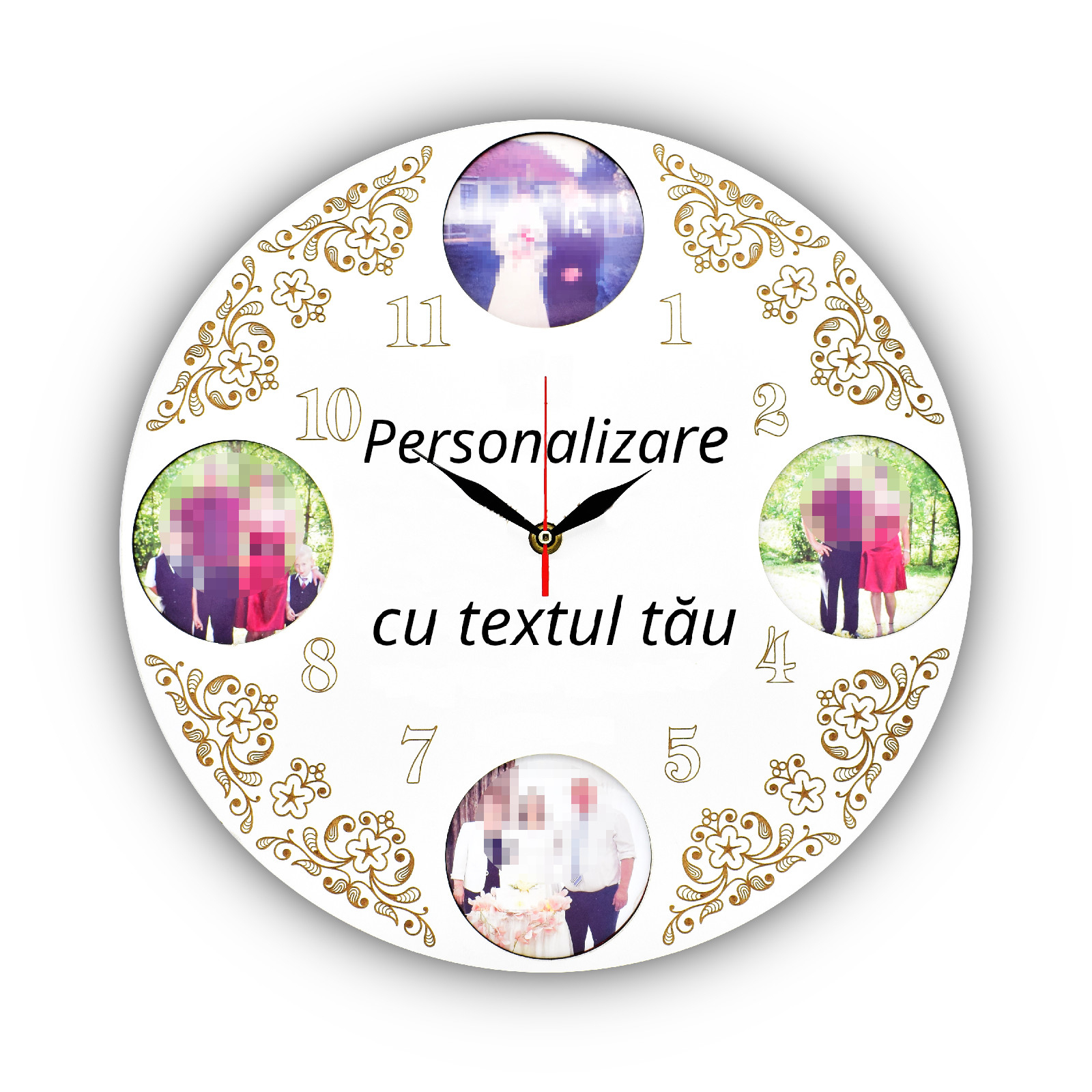 Ceas de perete cu text gravat-personalizat cu poza aniversarea casniciei