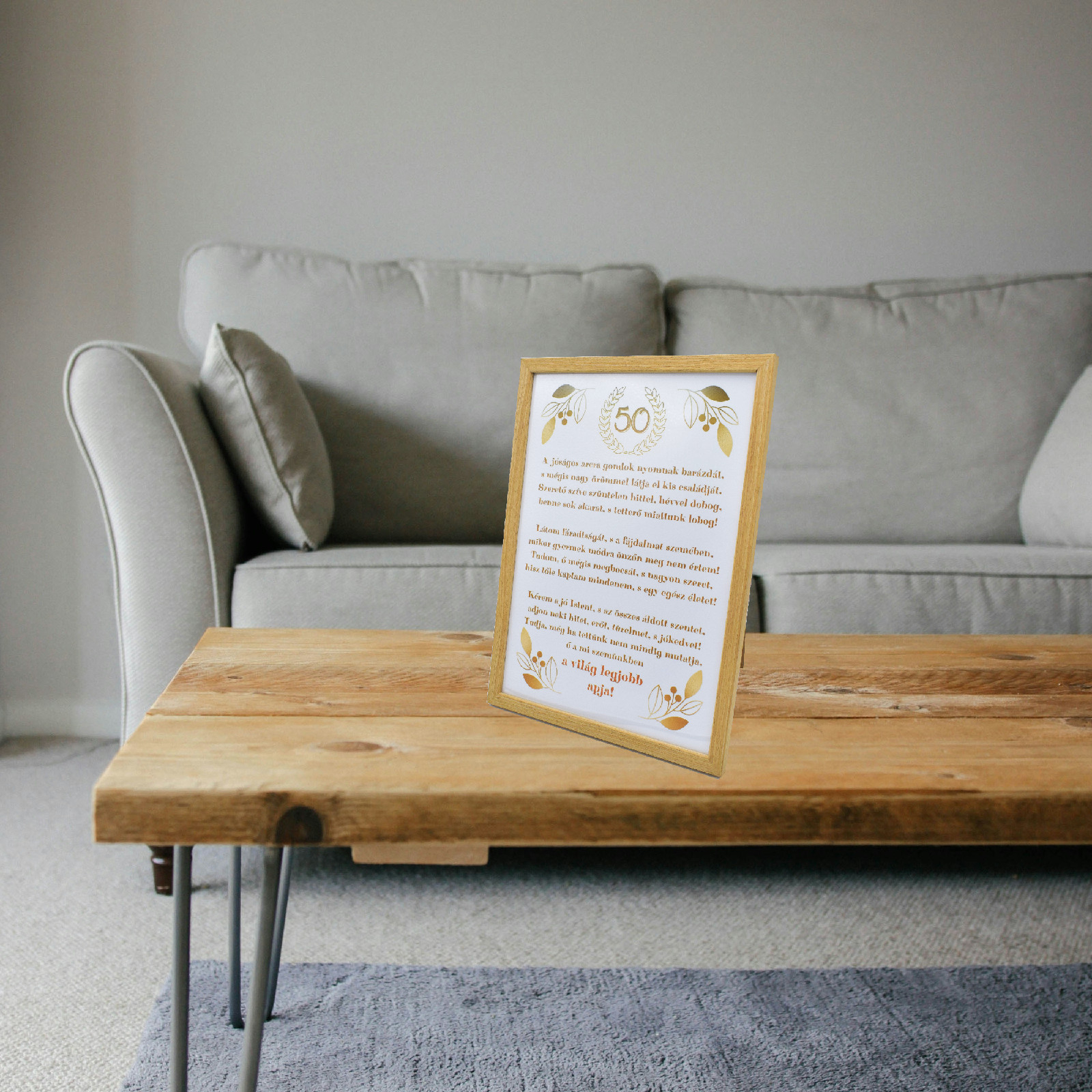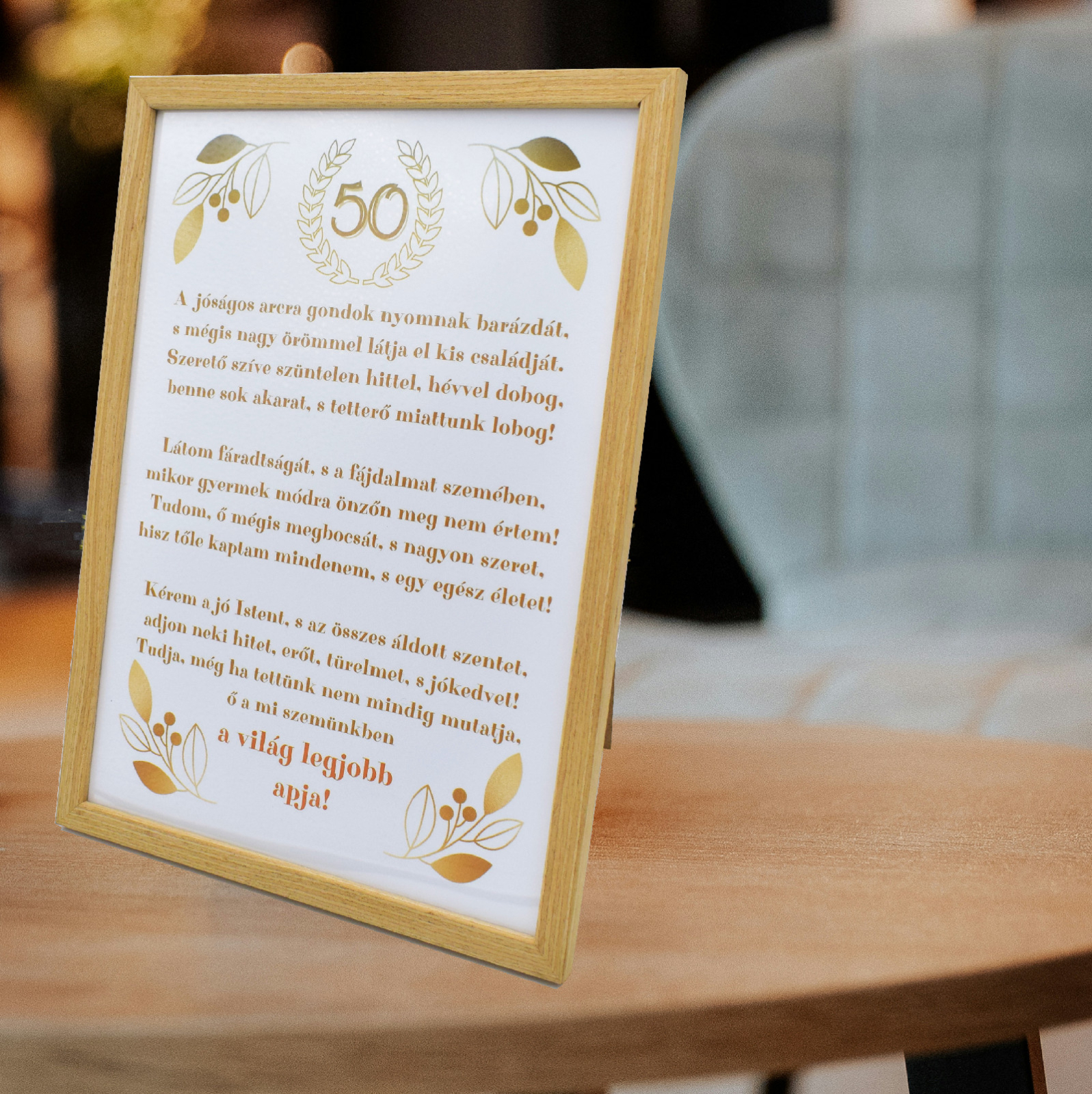 Produsul este ideal ca idee de cadou pentru tata, aniversari importante (ex. 50 de ani), zile de nastere sau alte ocazii speciale in care doresti sa transmiti apreciere, recunostinta si emotie. Designul clasic si nuantele calde permit integrarea usoara in orice tip de decor interior. Rama poate fi asezata pe mobilier, birou sau raft, dar se poate agata si pe perete, fiind un obiect decorativ cu valoare sentimentala, care va pastra vie amintirea unui mesaj special.