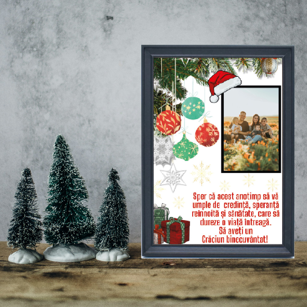 Alege fotografia preferata si mesajul dorit – noi il transformam intr-un decor unic de sarbatoare. Cadoau ideal pentru familie, prieteni sau pentru a-ti infrumuseta propria casa in perioada Craciunului.